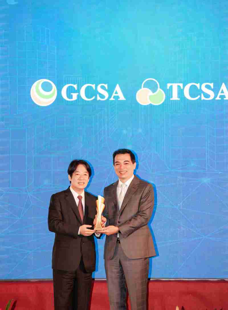 达全方位永续表现获全球永续奖及台湾永续奖肯定,,,,由副总统赖清德颁奖 (左),,,,万利总经理柯富仁 (右) 代表领奖