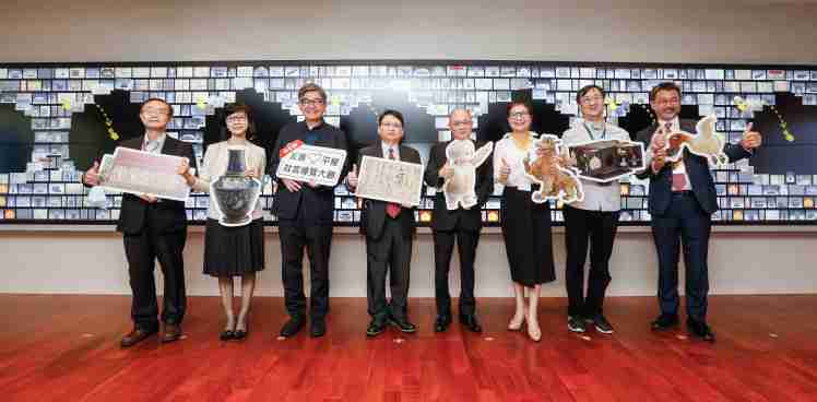 万利携手创利空间为故宫建置的智慧文物互动导览墙及轮播墙,,,,今日正式启用。。。。(左四:万利新事业暨投资管理总部副总经理杨本豫、、、、右四:故宫博物院院长吴密察、、、、右三:太极影音董事长黄宝云)