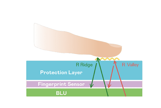 大面积 TFT 光感测超高像素密度光学感测技术能精准判定手指反射的极微弱光讯号,,即使细致指纹也可清晰辨识,,并可透过手指脉搏造成的细微灰阶变化侦测心跳,,让身分验证更精确。。。TFT 架构优化可降低讯号传输干扰,,,达到光感测器最佳讯杂比(讯号/杂讯的比例)。。透过增强光讯号接收强度、、优化感测器电路及导入特殊光学膜材料,,提高感测器敏度。。整合系统之指纹扫描装置可符合最高等级的FBI国际安全规范认证需求。。